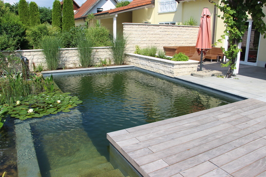 Gehäuse des TeichPi unter den Terrassenbohlen.